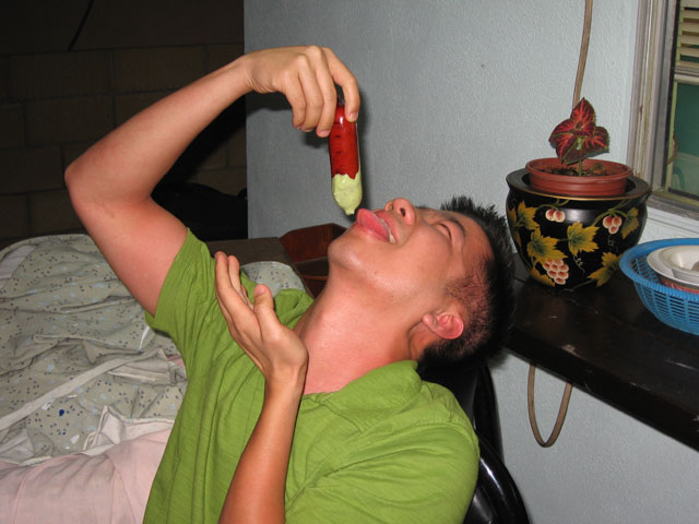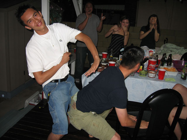 Chi taking that ass from Junior after losing to Cao in a shot taking contest - 7/4/06 |